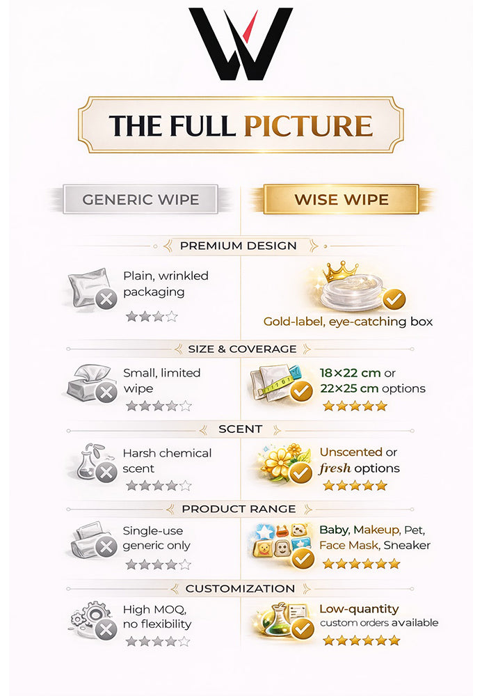 WISE WIPE CUSTOMIZABLE HAND & FACE CLEANSING WET WIPES 50 BOXES 2500 PODS